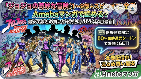 ジョジョの奇妙な冒険(1〜9部+スピンオフ)はAmebaマンガで全巻読める?最安でまとめ買いする方法【2026年4月最新】