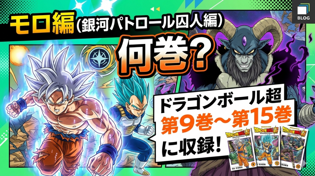 【結論】モロ編(銀河パトロール囚人編)は漫画『ドラゴンボール超』第9巻〜第15巻に収録 「モロ編って何巻から何巻まで?」という疑問への結論です。モロ編(正式名称:銀河パトロール囚人編)は、漫画『ドラゴンボール超』の第9巻〜第15巻(第43話〜第67... -